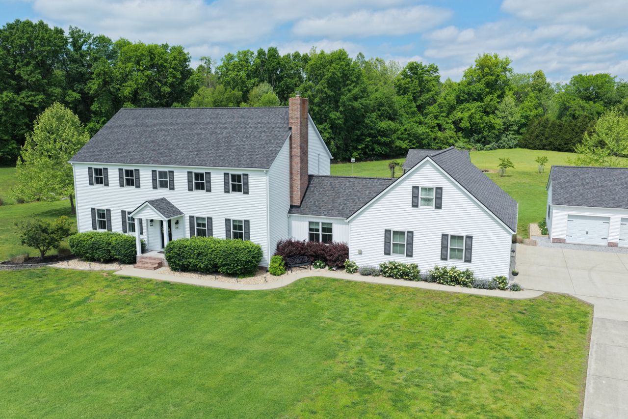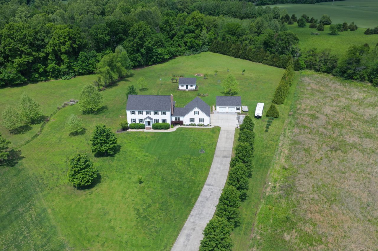 One-of-a-kind custom-built Colonial-style 2-story home located in Carterville School District and Hickory Trails Subdivision. Offering approximately 4,245 sq. ft. plus oversized screened in porch on a beautiful 5-acre lot with mature trees, fruit trees, and blueberry bushes and gorgeous landscaping. This spacious home features 5 bedrooms, 3.5 bathrooms, and a dedicated home office-perfect for remote work or a quiet workspace. The layout includes a master suite on each level. The main floor master offers private laundry, while the second floor features its own laundry area and a fireplace in the upstairs master. Inside, you'll find 9-foot ceilings on the main level, an open-concept kitchen with a six burner gas stove, quartz countertops and quality appliances. The main floor has updated flooring, and remodeled bathrooms. This home also comes with a wood-burning stove capable of heating the entire home, brand new heating and air installed in 2025. Recent updates include a new roof in 2023 with a transferable warranty, new siding in 2023, and a new sump pump in the crawlspace with warranty in 2023. The home also includes a partial basement/storm shelter under the attached garage and a backup generator that powers most of the home during outages. Outside, enjoy the peaceful setting from the screened-in porch or patio area with a brick fire pit. The property includes a large 2-car attached garage, a large heated and cooled 2-car detached garage with attic storage, plus a garden shed with power and attic storage. Located in a quiet neighborhood with space, privacy, and practical upgrades, this property checks all of boxes.