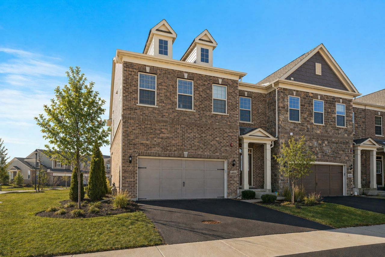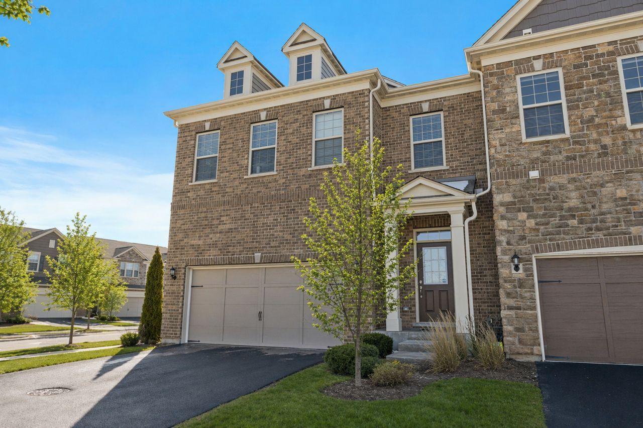 Rarely available northeast-facing end unit in gated Camberley Club, located within the award-winning Adlai E. Stevenson High School District. Built in 2019, this pristine Fairfax model sits on a premium corner lot offering added privacy, extra windows, exceptional natural light, and usable side and rear yard space that lives more like a single-family home. The main level features 10-foot ceilings, hardwood flooring, and an open layout anchored by a living area with a gas fireplace. The kitchen is appointed with white cabinetry, marble backsplash, granite countertops, and high-end appliances. Upstairs, the spacious primary suite includes a sitting area or office, private balcony, dual vanity bath with separate tub and shower, and two large walk-in closets. Two additional generously sized bedrooms, abundant closet space, and a side-by-side laundry room complete the second floor. The deep-pour basement with 10-foot ceilings, plumbed for a bath in the southeast corner, offers excellent potential for future living space. Camberley Club is a gated, professionally maintained community with private park and recreation areas, exterior maintenance, landscaping, and snow removal, including driveways and walkways. Ideally located near golf courses, shopping, dining, and quick access to I-94. End units carried an approximate $30,000+ developer premium over interior units.